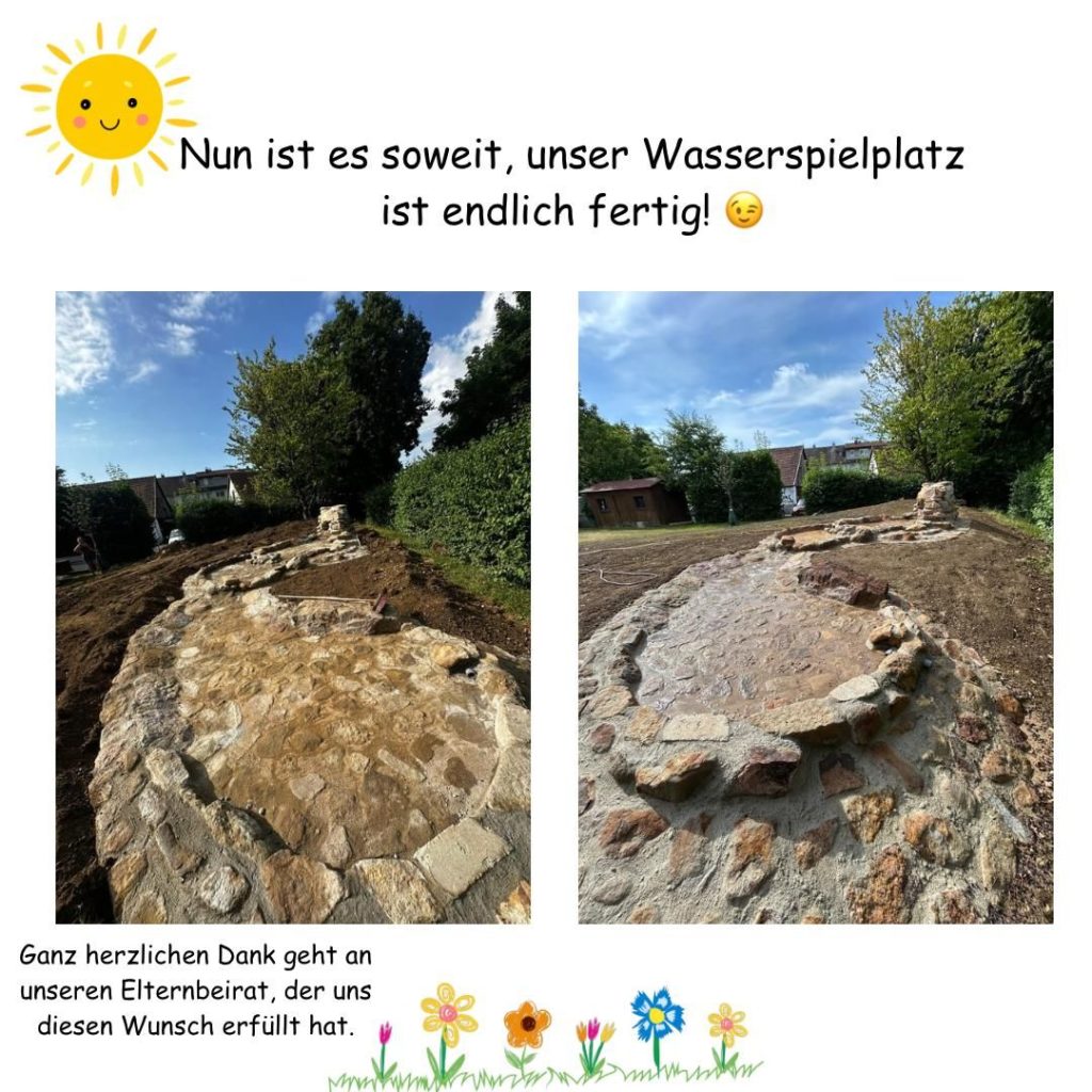 Nun ist unser toller Wasserspielplatz fertig! Wir freuen uns alle riesig! Danke an unseren Elternbeirat! Ihr seid spitze und habt uns diesen tollen Spielplatz ermöglicht!